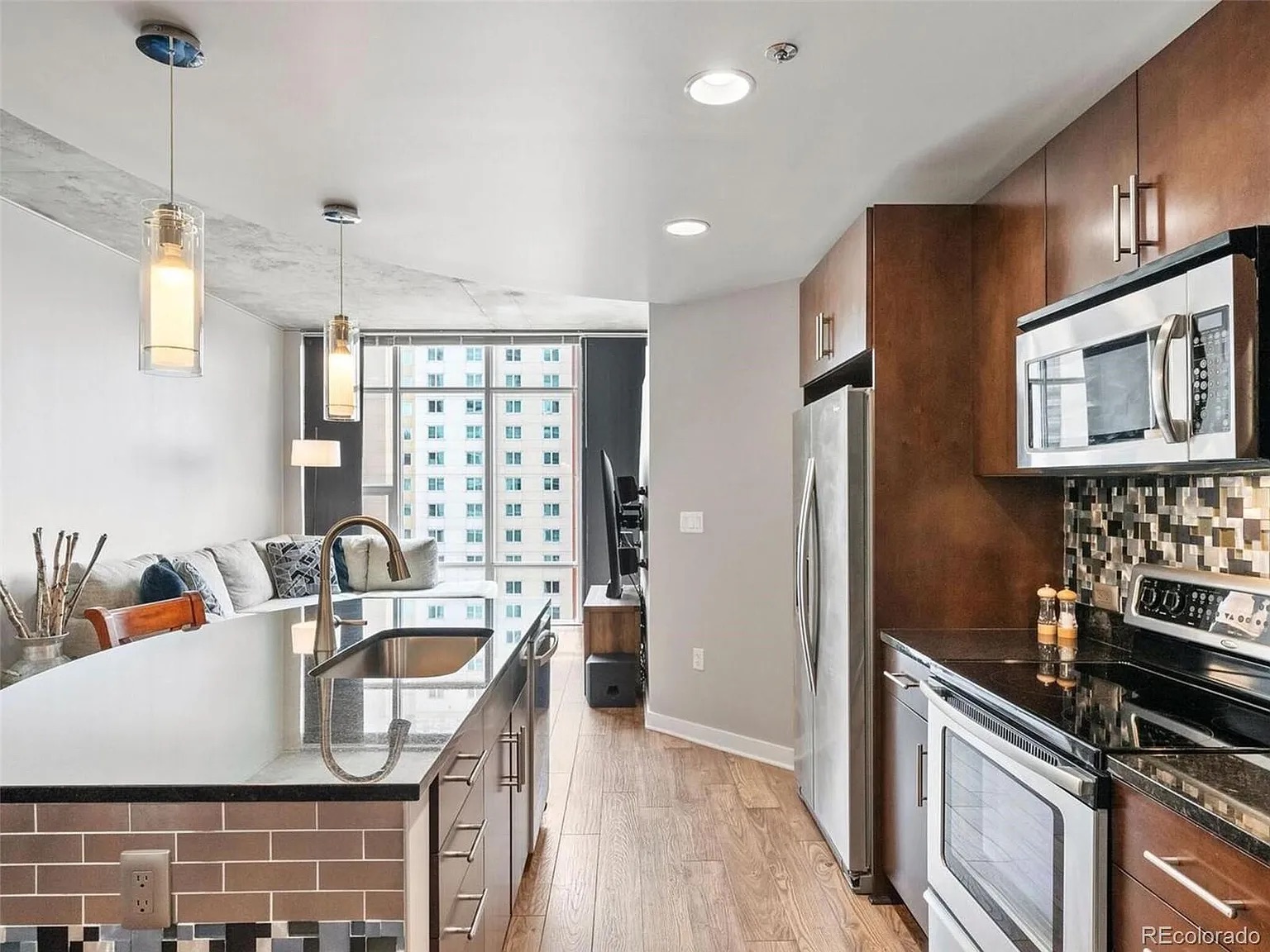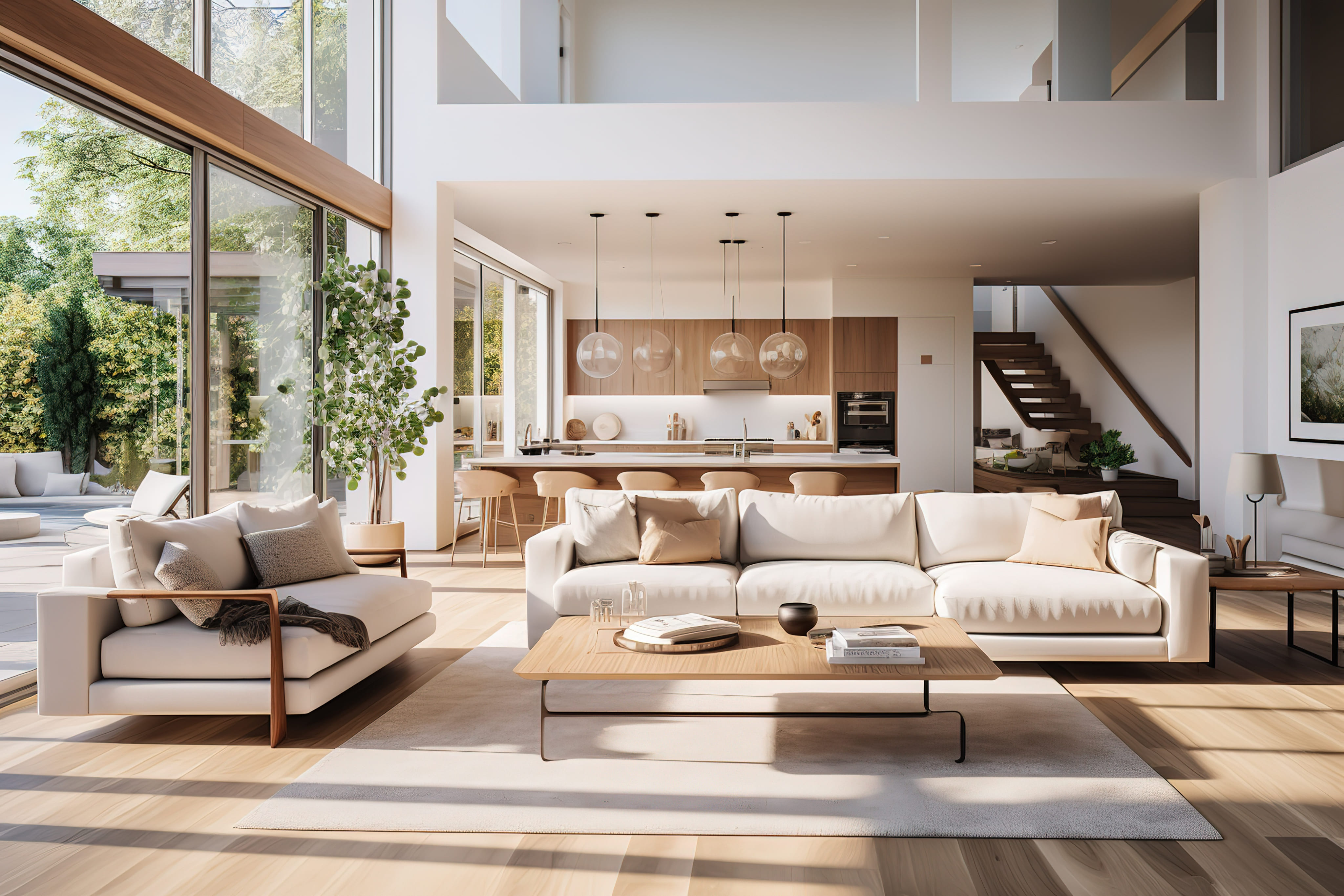 Experience modern living at its finest with an expansive open floor plan that seamlessly integrates the living, dining, and kitchen areas. High ceilings enhance the sense of space, while large windows invite natural light to fill every corner of the home. The fully equipped contemporary kitchen features top-of-the-line appliances, sleek cabinetry, and ample counter space, perfect for both everyday meals and gourmet cooking.
